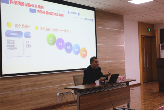 为扎实推进学院内部质量保证体系诊断与改进工作,培训班还邀请全国教学诊改专家、淄博职业学院党委副书记姜义林教授作了主题为《理念先行 系统发力 扎实推进诊改工作》的报告。姜教授从诊改工作的主要依据、基本方针、指导思想、目标任务、重点与发力点等方面介绍了对诊改工作的整体把握;从质量管理、教师发展、学生发展等方面介绍了诊改工作的实践与探索,分享了开展诊改工作的体会与感悟,对我院构建内部质量保证体系具有较强的指导与推动作用。