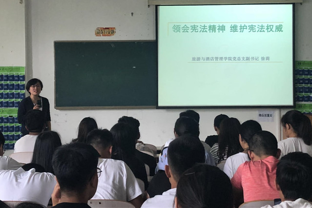 本期活动围绕学习贯彻十九届二中、三中全会精神,做合格入党积极分子展开。旅游与酒店管理管理学院党总支副书记徐莉为学员讲党课,徐莉以十九届二中全会审议通过的《中共中央关于修改宪法部分内容的建议》切入主题,为学员们讲授了我国宪法的性质和基本知识,要求大家作为一名入党积极分子要带头学法、守法。