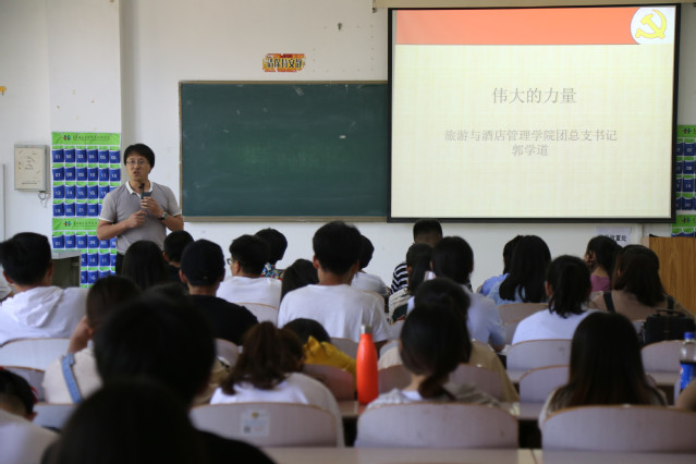 旅游与酒店管理学院学生党支部书记郭学道以“伟大的力量”为题,通过回顾党的发展历史,阐释了信仰的力量,并通过一份“不合格党员行为的表现清单”让学员们了解了如何在实际生活中向党员看齐。旅游与酒店管理学院学生党支部举行了十九届二中、三中全会公报图片展活动,通过图片展览的方式让大家学习了十九届二中、三中全会的会议内容及会议精神。