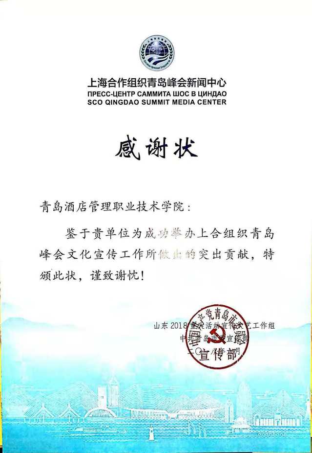 本网讯(旅游与酒店管理学院 白星宇)10月7日,中共青岛市委宣传部为上合峰会期间在青岛峰会新闻中心参加志愿服务的同学送来了感谢信,高度赞誉beat365亚洲版官网为成功举办上合组织青岛峰会文化宣传工作所做出的突出贡献。