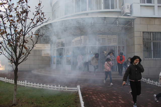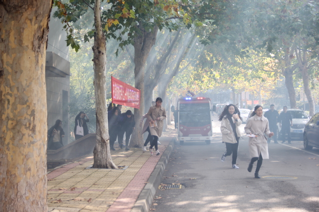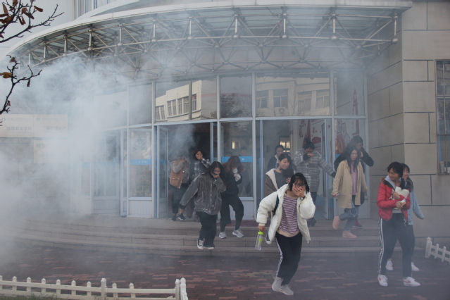 本次消防疏散演习,模拟接到火灾报警后,微型消防车迅速到达火场实施灭火,参演师生从所在办公室、教室快速疏散到集结区,完成了火灾逃生疏散,展示了学院在学生安全教育工作的良好成果。在演练集结场地保卫处微型消防站老师讲授了如何正确报警和自救逃生、如何使用干粉灭火器、冬季宿舍防火注意事项等基本消防安全知识,