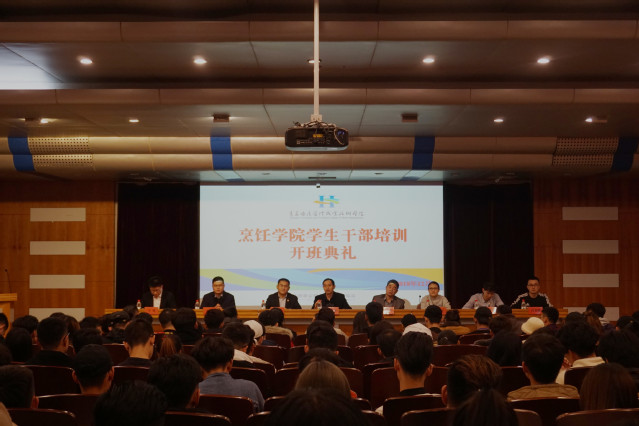 本网讯(烹饪学院 孙寅勇)12月3日,烹饪学院2018学生干部培训---雁阵培育计划在学术报告厅开班,学生工作处处长赵明富、党委宣传部副部长陈赞、烹饪学院党总支书记石增业、团总支书记尹俊及烹饪学院全体辅导员老师出席开班仪式。