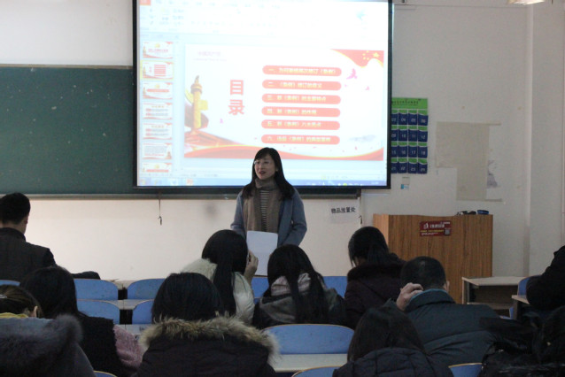 本网讯(基础部 田峰)1月3日中午,学院党委委员、纪委书记姜玲玲为基础部党支部和思政部党支部讲党课,基础部、思政部全体党员聆听党课。