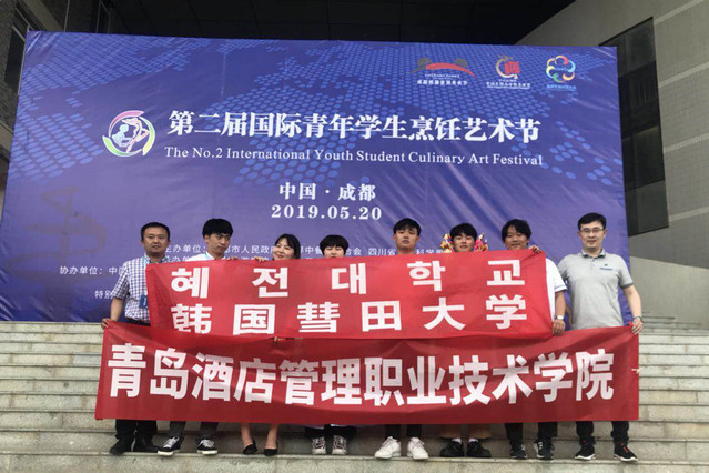 第二届国际青年学生烹饪艺术节由世界中餐联合会主办,四川旅游学院承办,主要设置有青年学生烹饪艺术展、烹饪教育高峰论坛和烹饪技能大赛等多个模块。烹饪技能大赛作为活动的重要环节,邀请国内和国际多个高职院校组队参赛。在烹饪学院和国际交流与合作处统筹安排下,从韩国彗田大学留学生中选取六名学生组成彗田大学队前往参赛。在时间短,任务急的情况下,学院精心备赛、沉稳发挥,最终取得优异成绩。