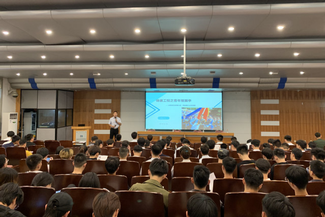 在讲座开始前,辅导员刘云飞做了“军营在召唤 我们等你来”的集中宣讲,对2019年度大学生入伍的相关政策进行了解读,详细地向同学们介绍了国防事业的崇高和伟大所在,以及对个人成长磨炼和提升的重要性。