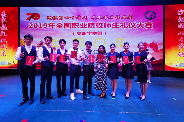 本次比赛由中国职业技术教育学会主办,在为期两天的比赛中,来自全国22个省(自治区)的50所职业院校代表队,449名参赛队员参加了比赛。本次赛事共分为职业仪态展示、礼仪故事演讲、礼仪操、礼仪情景剧等四项赛事。我院选手凭借多年来职业礼仪培养的深厚底蕴,依托本次比赛提供的良好展示平台,为祖国七十华诞献礼。