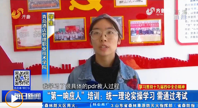 恰在此次培训班举办三天前,在第一海水浴场,一名“第一响应人”运用所学知识成功救起一位心脏骤停的冬泳老人,因此,此次公益培训受到多家媒体的格外关注。其中,山东电视台齐鲁频道在当日《每日新闻》栏目“学习贯彻十九届四中全会精神”专题中对本次活动进行了采访报道。