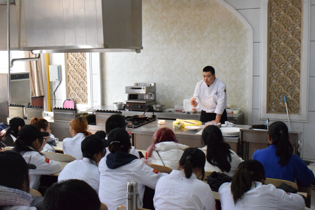 各单位的行政总厨、厨师长分别进行烹调工艺与营养、西餐工艺、中西面点工艺等专业的技能演示及交流。合作酒店对此次校企技能交流活动非常重视,为了取得更好地交流效果,各单位都做了充分准备,力求完美呈现专业技能。大师们向同学们进行菜品展示的同时,还向同学们介绍了自己的成长经历及当前餐饮业发展的趋势、酒店厨房的管理模式、厨师长职责、员工职责等,让同学们对酒店厨房工作模式及环境设施有了大致了解,为将来外出实习做好了充分的心理准备。