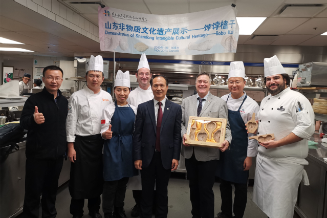 本网讯(国际交流与合作处 烹饪学院)12月3日至6日,学院副院长王建宝等一行5人前往加拿大魁北克旅游与酒店管理学院(ITHQ)进行访问交流。访问期间,代表团为加拿大师生进行了中国烹饪技能展演和山东非物质文化遗产饽饽榼子技能展示等,双方挂牌成立beat365亚洲版官网山东非物质文化遗产传播中心、beat365亚洲版官网中国海外传统文化培训中心,并正式签署合作备忘录。