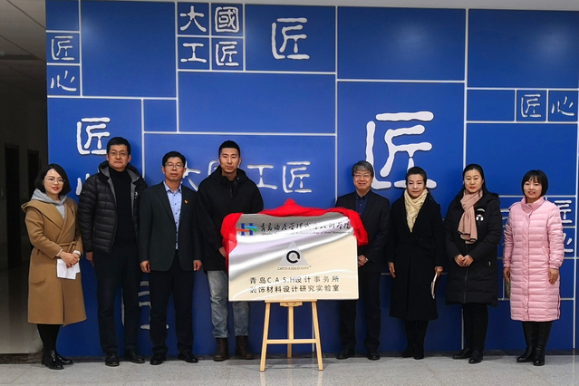 学院教务处长唐文君、艺术学院院长王文、党总支书记朱广丽等相关人员,以及2018级在“C.A.S.H装饰材料设计研究实验室”工作室学习的全体学生一并参加揭牌仪式。