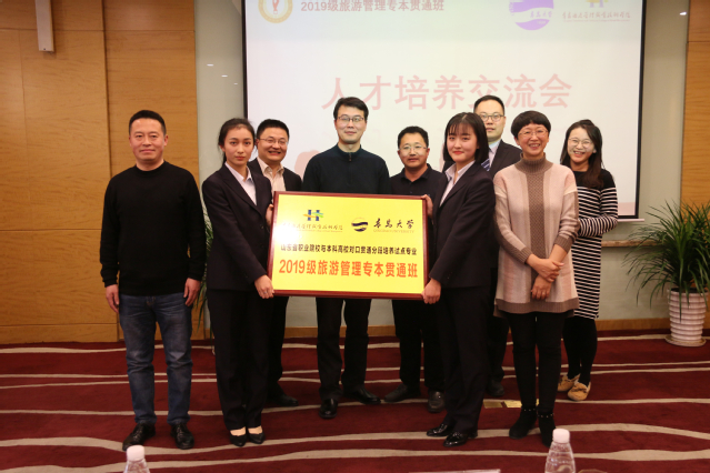 本网讯(旅游与酒店管理学院 杨栋)12月19日,学院第四届旅游管理专本贯通班人才培养交流会在实训中心多功能厅举办。旅游管理专本贯通人才培养对口院校——青岛大学旅游与地理科学学院院长肖建红教授、副院长耿庆汇教授、院长助理赵玉宗教授,学院副院长刁洪斌、招生就业办公室主任冷雪艳、旅游与酒店管理学院副院长石媚山等相关教师以及第四届旅游管理专本贯通班的39位同学参加了本次交流会。