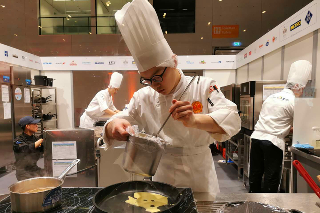 本网讯(烹饪学院 江云涛)2月14日—19日,2020世界奥林匹克烹饪大赛在德国斯图加特举行,中国国家青年厨师队喜获佳绩,学院西餐工艺专业学生于广川参加团体赛获得一枚银牌一枚铜牌,韩昊参加个人赛项目“烹饪艺术”获得一枚银牌。