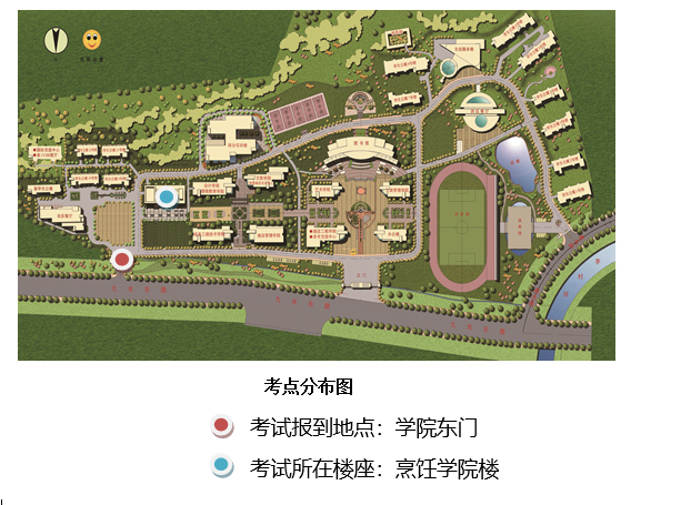 考生可于7月14日下午14:00—16:00熟悉学院东门位置(根据疫情防控工作需要,仅限看考点报到位置,不得进入考点,考试当天将由专人引导有序进入考点及考场)。