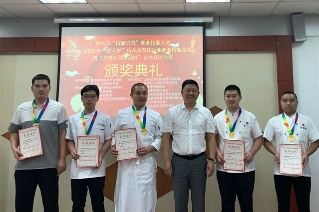 本网讯(烹饪学院 张会强)9月22日,2020年山东省“正大杯”山东省餐饮行业职业技能大赛选拔赛在青岛举行,学院教师任传生、王庆泉荣获中式烹调项目金奖。
