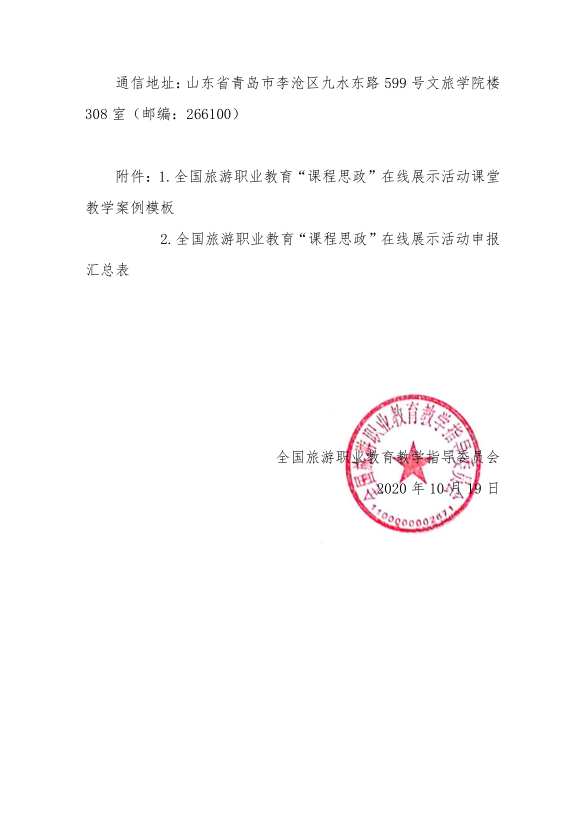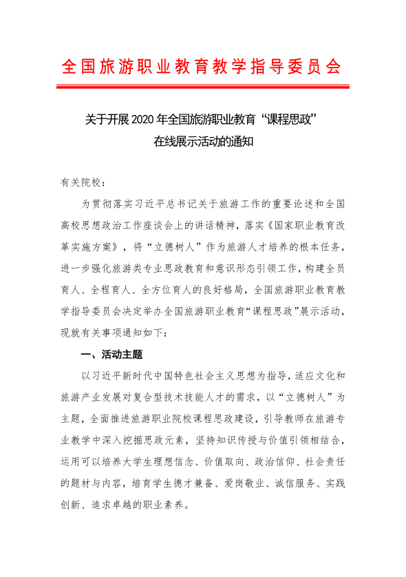 关于开展2020年全国旅游职业教育“课程思政”在线展示活动的通知