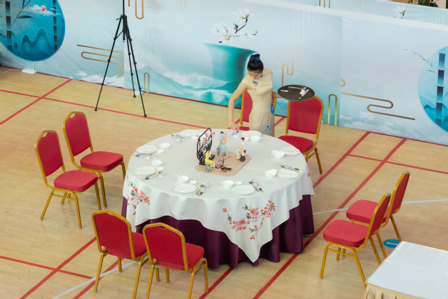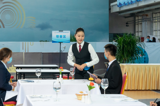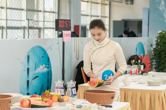 本网讯 (党委宣传统战部)11月25日,2020年全国职业院校技能大赛改革试点赛高职组“餐厅服务”赛项在学院体育馆精彩上演、秩序井然。大赛现场,来自全国各地的选手们以饱满的热情、动人的微笑,举手投足间尽显职业素养,一颦一笑里蕴含职业态度。
