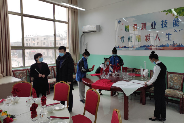 在专业建设研讨会环节,于宏刚介绍了学院的发展历程、办学特色等基本情况以及9月份对接西和县职业中专以来开展的一系列措施和成效,围绕西和县职业中专发展目标愿景、旅游类新专业申报、现有专业转型升级等方面介绍了学院的帮扶建议。他表示,近年来,学院认真贯彻落实教育部教育脱贫攻坚“十三五”规划和实施方案,借助入选“双高计划”的契机,以更高的责任和使命助力打赢脱贫攻坚战和乡村振兴。在现场参观环节,于宏刚参观了西和县职业中专的实训室并与相关教师进行了交流,分享了学院在理实一体化实训室建设、参加和承办各级技能大赛等方面的经验。