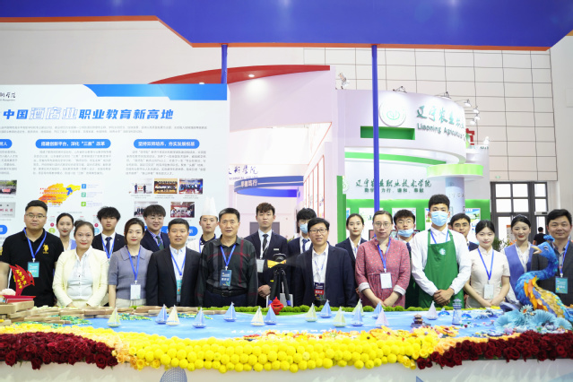 学院展区以多媒体影音、实物、平面图文及职业体验观摩互动等形式相结合,设置“百年芳华·帆之都”主题展台、“双高计划”建设成果展及食品雕刻、中华茶艺、咖啡艺术、插花艺术、调酒艺术、衍纸艺术等互动体验项目展台。展台设计凸显学院“聚焦酒店业办专业”和酒店产业链条专业组群发展的理念,融合酒店管理、环境艺术设计、烹调工艺与营养、工艺美术品设计等专业特色。