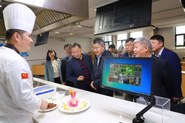 调研期间,彭建国一行参观了烹饪实训楼、酒店管理学院实训中心、工商管理学院物流快递实训中心,对学院在教学、科研、实训、社会服务方面取得的成效给予充分肯定,对学院现代化的教学场所、先进的实训教学设备给予高度评价。