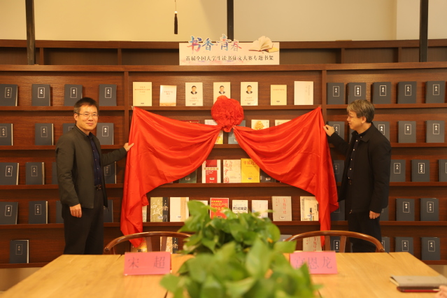 活动中,宋超和宫恩龙共同为“‘书香·青春’——首届全国大学生读书征文大赛”专题书架揭幕,并为各二级学院学生代表赠书。同学们在互动交流中纷纷表示,将以“要读书”“读好书”“会读书”“善用书”为目标,不断在阅读中汲取营养、增长才干。