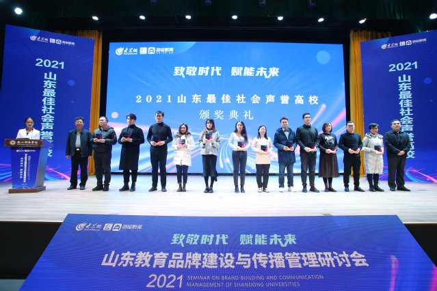 本网讯(党委宣传统战部 李代玉)12月24日上午,2021山东教育品牌建设与传播管理研讨会在泰安召开,会上发布了“2021山东最佳社会声誉高校”和“2021最具影响力教育政务融媒体”两大榜单,学院再次获评。