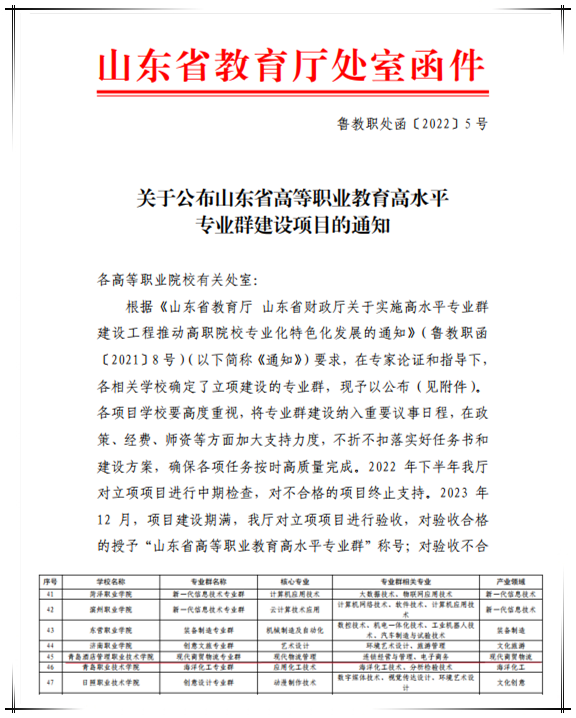 本网讯(教务处 工商管理学院)近日,山东省教育厅公布了《山东省高等职业教育高水平专业群建设项目的通知》(鲁教职处函〔2022〕5 号),beat365现代商贸物流专业群立项,这是继旅游接待业专业群、烹饪类专业群之后,学校获批立项的第三个省级高水平专业群。