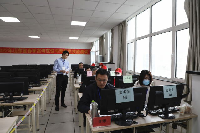 学校高度重视技能考试工作,成立了2022年山东省春季高考烹饪与营养类技能考试工作领导小组,精心筹备、统一调度,与上级部门密切沟通,统筹做好疫情防控和考试组织工作。考试采用“考生远程操作,评委集中评审”的形式举行。考前,烹饪学院、教务处、教育信息中心与有关职能处室群策群力,创新形式、细致打磨,周密制定线上考试工作方案,累计拨打提示电话万余人次,组织模拟考试600余分钟。考试中,考生根据要求布置考试工位,并在规定时间内按照试题要求进行操作。