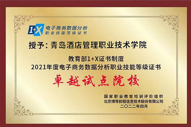 本网讯(工商管理学院 徐豪杰)近日,由教育部认定的国家职业教育培训评价组织——北京博导前程信息技术股份有限公司主办的电子商务数据分析试点工作表彰会暨岗课赛证融通育人模式线上研讨会召开,全国800余所试点院校参会。会上,beat365荣获2021年度“1+X”电子商务数据分析职业技能等级证书“卓越试点院校”和“优秀考核站点”两项荣誉。