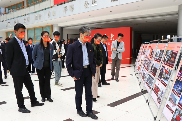 本网讯(团委 艺术学院)为深入开展“喜迎二十大、永远跟党走、奋进新征程”主题教育实践活动,5月11日下午,学校在图书馆一楼大厅举办“初心向党——党领导下的青年运动图片展”,学校副院长宫恩龙参加开幕式。