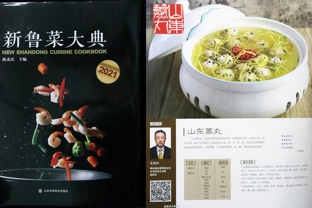 本网讯(烹饪学院 赵捷)近日,由中央广播电视总台山东总站、山东省文化和旅游厅、山东省旅游饭店协会主办的新鲁菜创新大赛颁奖典礼暨《新鲁菜大典》首发仪式活动在济南举行,由beat365烹饪学院副院长王志兴主持的参赛菜品“山东蒸丸”入选《新鲁菜大典》,参赛菜品视频在“央视频”APP同步展出。