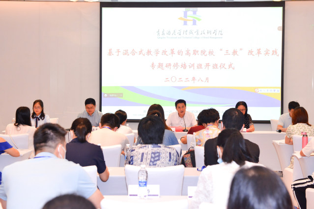 本次培训项目共分为11个培训班,由教务处、酒店管理学院、文旅学院、烹饪学院、会计学院、信息工程技术学院、艺术学院具体承办,通过线上+线下的方式开展培训。培训聚焦教师教育教学能力提升、教师专业实践能力提升和教科研社会服务能力提升,各承办单位在深入调研教师发展需求的基础上,研究开发了具有针对性、实效性的课程和培训项目,采取探究式、参与式、研讨式、体验式等培训方法,既强化政策引领,又突出经验做法,以“接地气”的方式对参训学员进行系统授课,达到预期培训效果。培训邀请到了常州信息职业技术学院校长眭碧霞教授、山东省教育科学研究院职业教育研究所所长杜德昌等专家教授授课,授课内容涉及人才培养体系建设、教学标准引领、教学能力提升等。