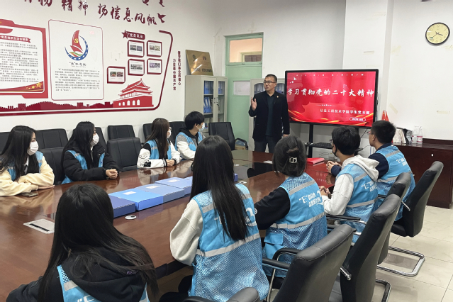 10月27日,信息工程技术学院学生党支部为“e”路同行志愿者团队开展了一次“初心”党课,引导青年志愿者学习贯彻党的二十大精神。同学们纷纷表示,将在新征程上锐意进取、主动作为、埋头苦干,坚守“奉献、友爱、互助、进步”的志愿服务精神,用实际行动践行青春誓言,做有理想、敢担当、能吃苦、肯奋斗的新时代好青年。
