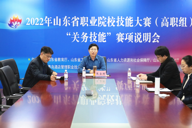 本网讯(工商管理学院 徐豪杰)11月22日,2022年山东省职业院校技能大赛(高职组)“关务技能”赛项说明会在行政楼三楼会议室举行。本次会议采取线上形式召开, 赛项专家组、各参赛队、技术支持单位等80余人参会,beat365副院长张宗国参加会议并致辞。