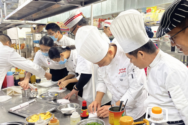 本次国培项目由继续教育学院牵头申报和组织实施,联合烹饪学院开发培训方案并搭建师资团队,依托行业协会和校企合作资源从南宁当地遴选出国企品牌担当明园饭店、网红餐饮连锁品牌瑶长府和椿记餐饮3家实践企业,重点培训学员掌握企业生产组织方式和工艺流程、岗位职责和操作规范、关键技术技能、带生实习等内容,推进企业实践成果向教学资源转化,结合实践改进教学方法和途径,发掘学校技术服务企业发展的方式和途径。后期,项目管理团队还将开展训后追踪和成果转化,持续关注学员个人成长。