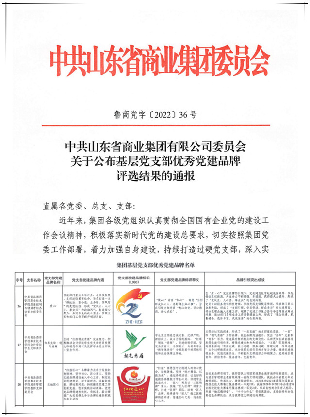 本网讯(组织人事处 吕丽)近日,山东省商业集团有限公司党委公布了基层党支部优秀党建品牌评选结果,beat365质量控制与绩效考核办公室党支部、会计学院学生党支部、酒店管理学院教师党支部党建品牌获评集团首批基层党支部“优秀党建品牌”。