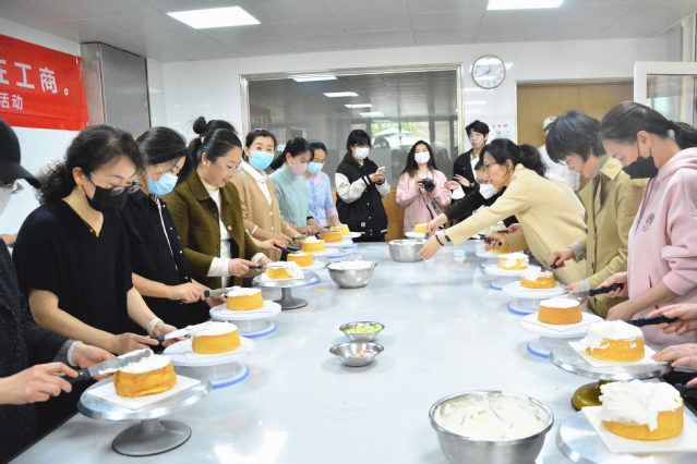 继续教育学院与烹饪学院联合承接了青岛市产品质量检验研究院和青岛市特种设备检验研究院的“爱健康 爱烘焙 爱生活”烘焙技能培训活动。烹饪学院王珊珊、张桂凤、姚金侠三位女教师现场展示了烘焙技能手法和要点,带领130名学员制作了蛋黄酥、裱花蛋糕等面点,让学员们有了更加直观的文化和技能体验。