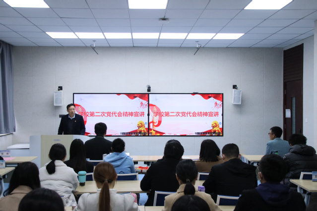 在艺术学院,党委委员、副校长宫恩龙宣讲了学校第二次党代会精神。宫恩龙总结了第一次创业以来办学治校的宝贵经验,分析了学校面临的形势任务。他表示,第二次党代会提出全面开启第二次创业新征程、创建职业教育本科学校的目标,是学校党委牢记习近平总书记对职业教育工作的重要指示,面对国家所需、教育所盼,面对广大师生员工对学校美好未来的向往,作出的一项关系全局的举措安排。这是政治的担当、发展的需要,是全校师生今后一个时期为之奋斗的目标。