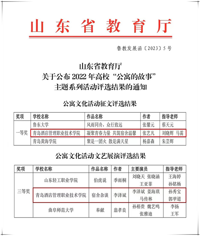 本网讯(学生工作处 尹艳)近日,山东省教育厅公布了2022年高校“公寓的故事”主题系列活动的评选结果,beat365报送的征文作品《凝聚青春力量 共筑宿舍温情》获得一等奖,文艺展演作品《宿舍杂谈》获得三等奖。