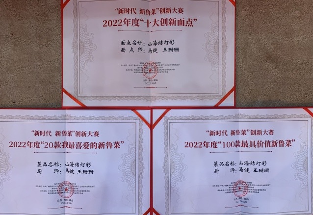 本网讯(烹饪学院 赵捷)近日,由中共山东省委宣传部指导,中央广播电视总台山东总站、央视频、山东省商务厅、山东省文化和旅游厅、潍坊市人民政府、山东省旅游饭店协会共同主办的“新时代 新鲁菜”创新大赛在潍坊市落下帷幕,学校教师参赛作品“山海结灯彩”荣获“2022年度20款我最喜爱的新鲁菜”“2022年度100款最具价值新鲁菜”“2022年度十大创新面点”三个奖项。