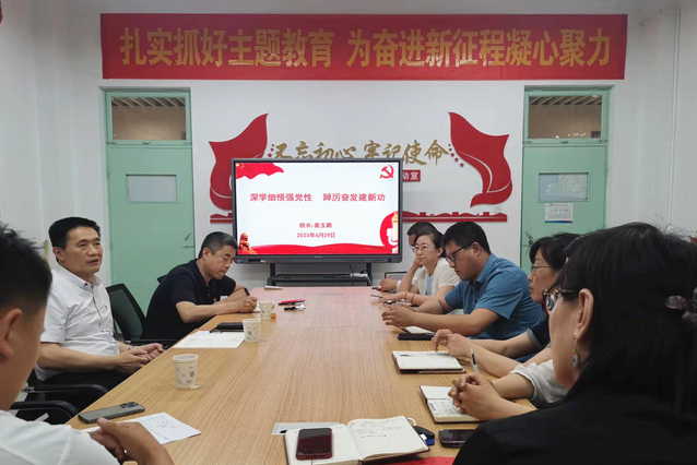 姜玉鹏带领大家回顾了党的百年发展史,并从“为什么学”“学什么”“怎么学”三方面讲授主题教育专题党课。他表示,要提高政治站位,不断增强学习的思想自觉和行动自觉;要掌握科学方法,推动学习不断走深走实,深刻把握习近平新时代中国特色社会主义思想的精髓要义;要学深悟透,发扬“挤”和“钻”的精神,深刻把握党的二十大精神的精髓要义;要下足功夫往心里走,深刻把握习近平总书记关于教育的重要论述和重要讲话指示精神,深刻把握初心使命,切实增强责任担当。姜玉鹏强调,要紧紧围绕“学思想、强党性、重实践、建新功”总要求,以学铸魂、以学增智、以学正风、以学促干,不断提高思想境界,不断提高工作本领,在“六个必须坚持”中感受真理力量,在师德师风建设中提升师德素养、践行初心使命。