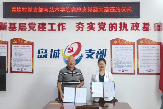 本网讯(艺术学院 徐小田)10月13日上午,艺术学院党总支与青岛市城阳区惜福镇街道青峰村党支部举行党建共建签约仪式。