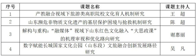 本网讯(科研发展处)近日,山东省文化和旅游厅公布了2023年度山东省文化和旅游研究课题立项名单,beat365共有4项课题获得立项。
