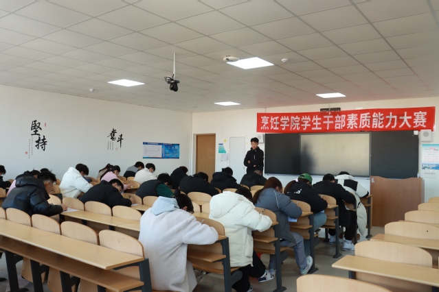 实干担当展作为,履职尽责作表率。11月27日,为进一步提升学生干部综合能力素养,锻造一支风气正、素质高、能力强、讲奉献的学生干部队伍,烹饪学院举办学生干部素质能力大赛。本次大赛分为笔试、案例分析和主题班会三个环节,分别考察学生干部的理论水平、政治素养、工作能力。大赛的举办,实现了“以赛促学”的目的,有效提升了学生干部服务班级的素质和能力,有助于推进班级管理制度化和规范化。