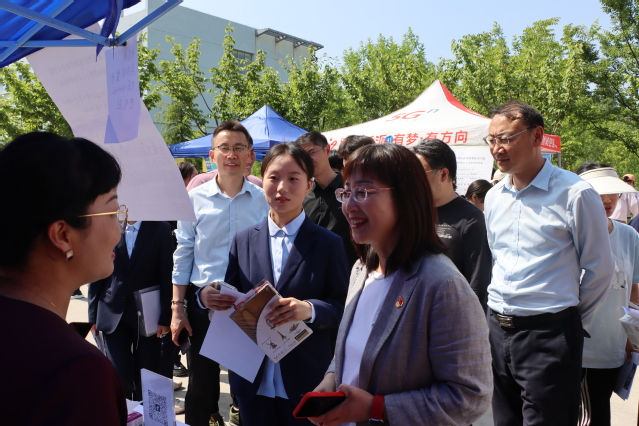 学校校长姜玉鹏,副校长、工会主席姜玲玲到场观摩指导工作,详细了解企业用人需求及毕业生就业意向,鼓励供需双方坚定信心、精准对接、把握机会,提高意向达成度。