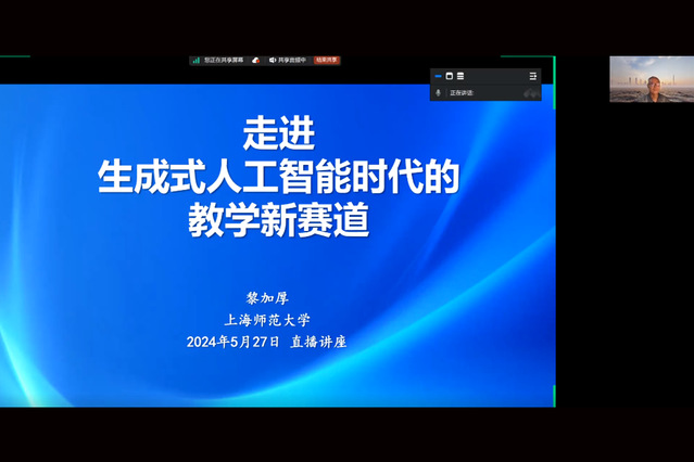 随后,信息工程技术学院邀请上海师范大学黎加厚教授开展《走进生成式人工智能时代的教学新赛道》专题讲座。讲座中,黎教授分享了生成式人工智能在教育领域的应用,讲述了文心一言、讯飞星火、通义千问以及KIMI AI搜索等10款生成式人工智能软件。