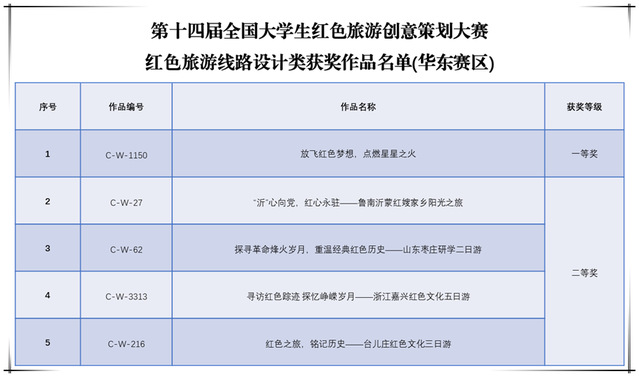本网讯(文旅学院 田超)近日,第十四届全国大学生红色旅游创意策划大赛成绩揭晓,beat365文旅学院学子作品荣获华东赛区红色旅游线路设计赛道一等奖1项、二等奖4项。
