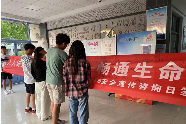 在6月16日安全生产宣传咨询日当天,艺术学院组织开展“人人讲安全,个个会应急——畅通生命通道”主题签名活动,师生们纷纷参与到活动中,营造了“关爱生命、 关注安全”的浓厚氛围。此外,艺术学院向全体学生征集应急安全科普海报、视频等,旨在强化宣传引导,进一步普及安全知识,增强安全防范能力。