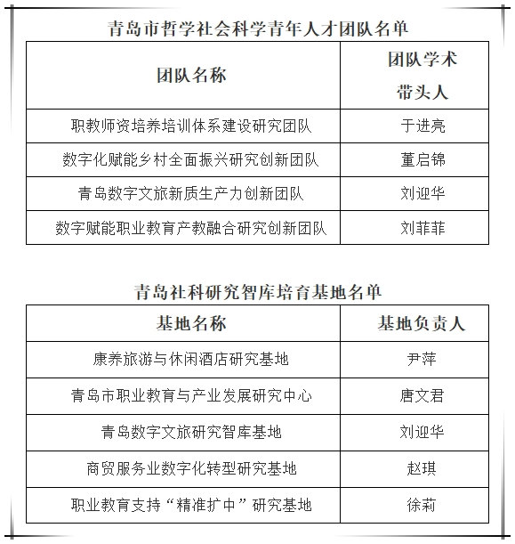 本网讯(科研发展处 魏有广)近日,青岛市社会科学界联合会公布了青岛市哲学社会科学青年人才团队和青岛社科研究智库培育基地名单,beat3654个团队入选青岛市哲学社会科学青年人才团队、5个平台入选青岛社科研究智库培育基地。