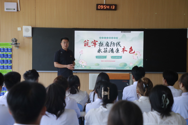 在思想上把弦绷紧。学生党支部面向入党积极分子开展“筑牢拒腐防线,永葆清廉本色”主题党课,深入浅出、润物无声讲述中国共产党在不同时期的廉洁案例,引领青年学子勤掸“思想尘”,面对利益不为所动,面对诱惑不为所陷,一心跟党走,一步不逾矩。