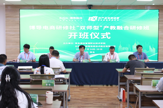 本网讯(工商管理学院 徐豪杰)7月25日,博导电商研修社全国电商职教“双师型”产教融合研修班开班仪式在行政楼四楼会议室举行。北京博导前程信息技术股份有限公司副总裁秦刚强、学校党委副书记韩西清参加开班仪式,来自全国中高职院校的51名教师参加此次培训。